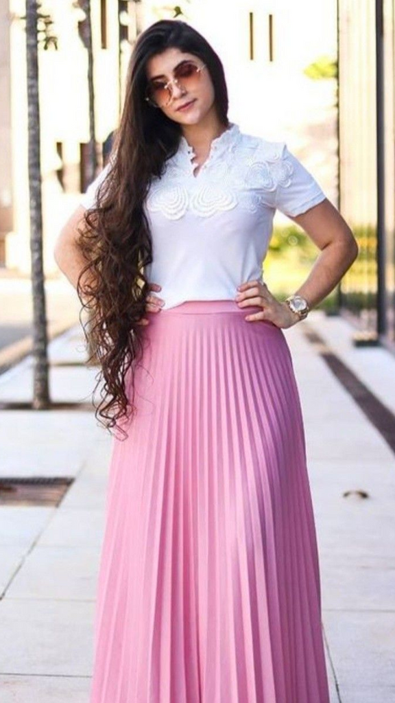 - Saia Plissada com Movimento Gracioso
